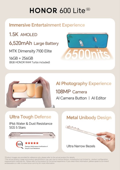 Honor 600 Lite এর অফিসিয়াল লঞ্চ ডেট এখনও ঘোষণা হয়নি। তবে রিটেইলার লিস্টিং থেকে অনুমান করা যাচ্ছে, খুব শীঘ্রই এটি গ্লোবাল মার্কেটে উন্মোচিত হতে পারে।
