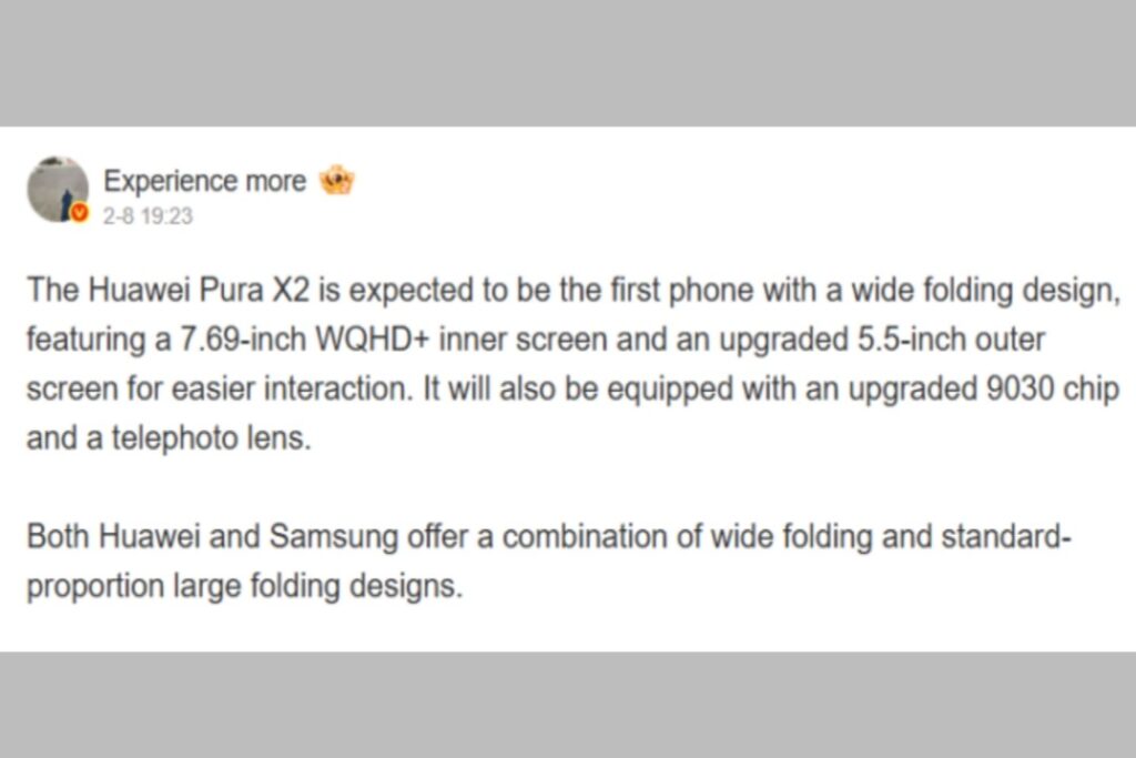 Huawei খুব শীঘ্রই চীনের বাজারে তাদের নতুন ফোল্ডেবল স্মার্টফোন Huawei Pura X2 লঞ্চ করতে পারে বলে একাধিক লিক রিপোর্টে জানা গেছে। নতুন তথ্য অনুযায়ী, এই ডিভাইসটি আগের Pura X মডেলের তুলনায় বড়সড় আপগ্রেড নিয়ে আসবে। বিশেষ করে ডিসপ্লে, প্রসেসর এবং ক্যামেরা সেগমেন্টে উল্লেখযোগ্য পরিবর্তনের ইঙ্গিত মিলেছে। ফোল্ডেবল সেগমেন্টে প্রতিযোগিতা বাড়াতে Huawei এই মডেলটিকে প্রিমিয়াম ফিচার সহ বাজারে আনতে পারে।