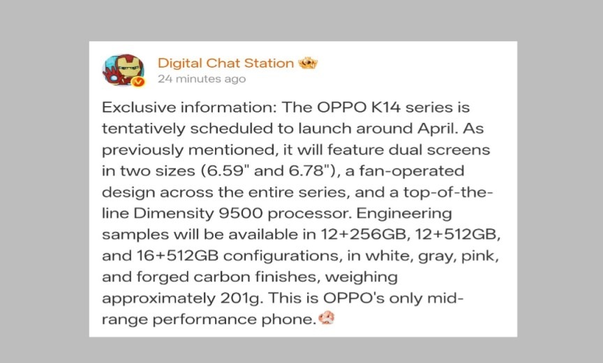 | Expected Models | Oppo K14 Turbo, Oppo K14 Turbo Pro |